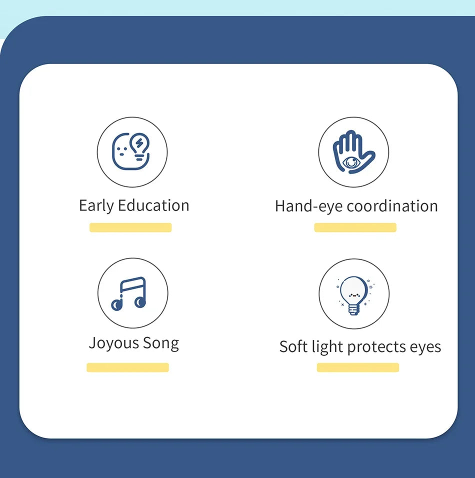 Each colorful key produces cheerful melodies and animal noises that help children recognize sounds, develop rhythm, and enhance auditory memory. With every tap, your child experiences a world of discovery — from playful tunes to interactive lights that flash in sync with the beat. The easy-to-press keys and smooth design make it perfect for tiny hands, encouraging both fine motor skills and hand-eye coordination through joyful play. 🎹